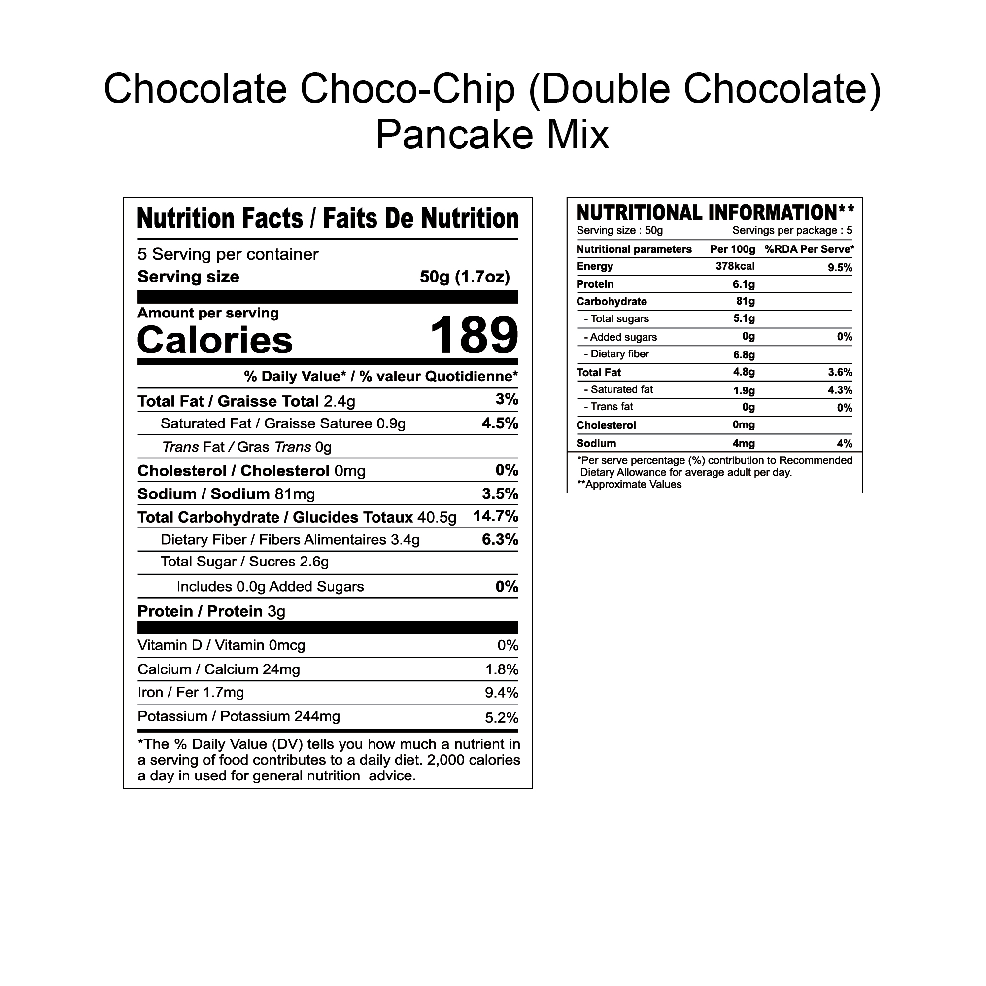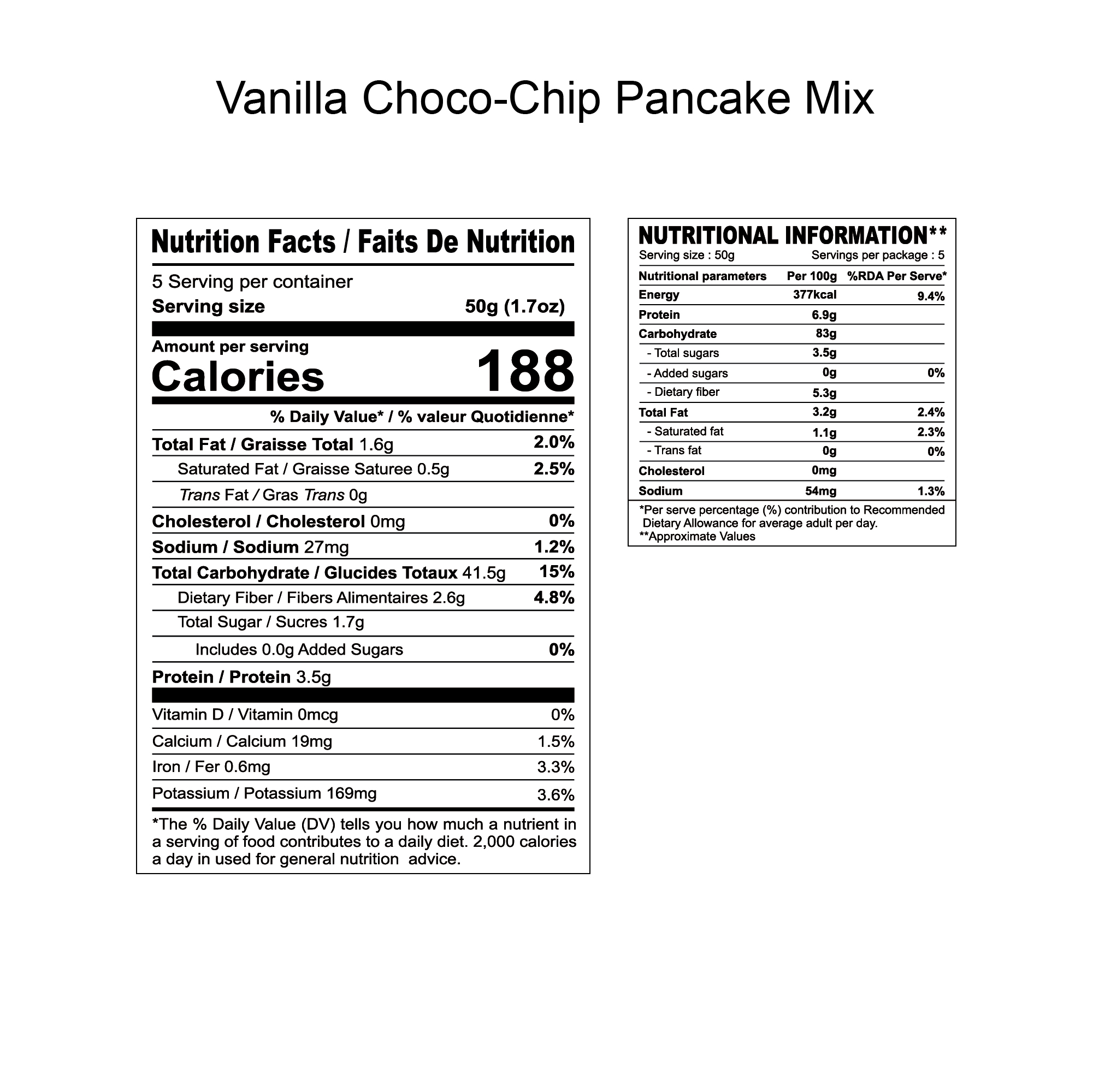 Pack contains: Chocolate Choco Pancake – 250g, Vanilla Choco Chip Pancake – 250g